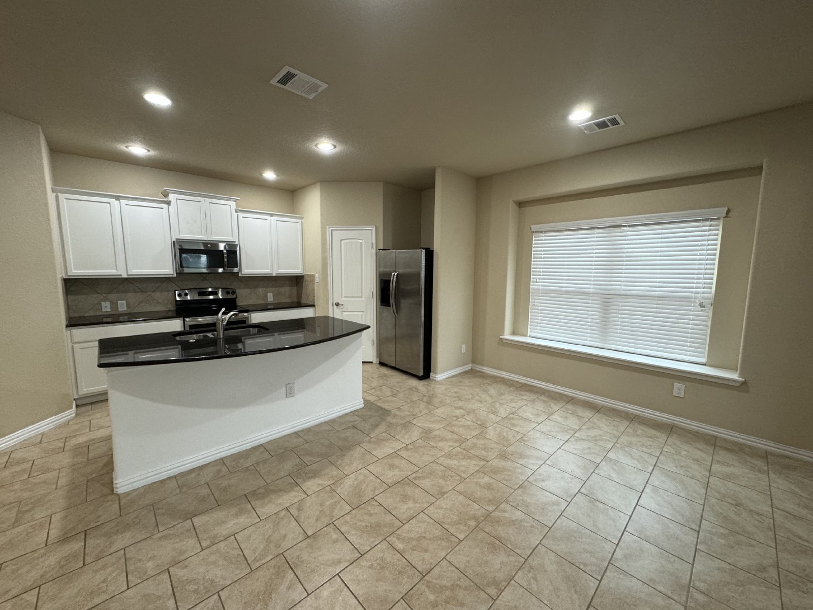 High ceilings 3 bedrooms and 2 bathrooms home. Welcome open floor plan with spacious living room is filled with plush carpeting and flows into the dining area. Kitchen has equipped ceramic tile and wood custom 42-inch cabinets, a granite kitchen island, and a flat-top stove. Primary bedroom with a huge walk-in closet and ensuite bathroom which features a soaker tub and double vanity. Located in a prime location in San Antonio's booming west side, you'll have easy access to downtown San Antonio.